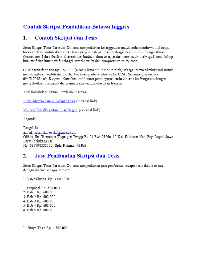 Contoh proposal skripsi bahasa inggris. Study at 9th grade smp negeri 19. Ass.mbak mas tlong dong post in skripsi pendidikan bhs inggris tentang translation textbook though sentence identification. Contoh abstrak skripsi dalam bahasa inggris mungkin bisa anda dapatkan dengan mudah di internet. An analysis of negotiation of meaning in speaking class at the second grade of senior high school.